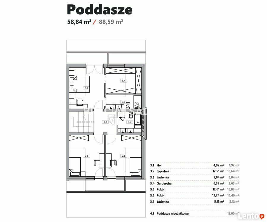 • 4.1 Poddasze nieużytkowe: 17,00 m²