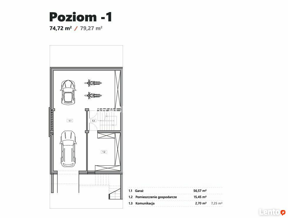 • Garaż dwustanowiskowy - 56,08 m²