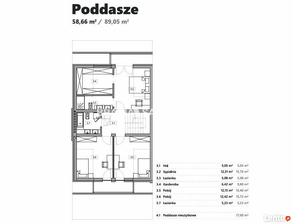 • Dodatkowe poddasze nieużytkowe - 17 m²