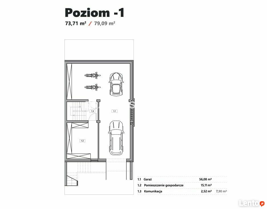 Łączna powierzchnia poziomu -1: 73,71 m²