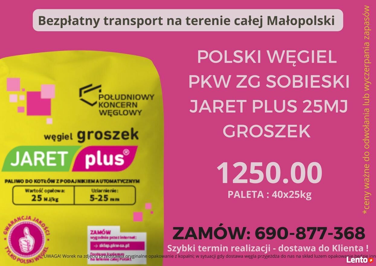 JARET PLUS - WĘGIEL GROSZEK - Polski Węgiel !TRANSPORT GRATIS !